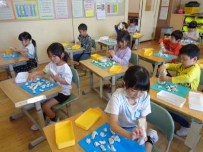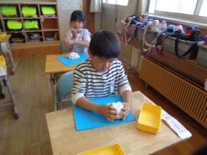 1年竹組 図工 公開日 2023/05/10 更新日 2023/05/10 1年生 「ねんどとなかよし」の学習をしました。粘土を使いやすくするために、ちぎったり丸めたり、はこのかたちをつくったりしました。だんだん、柔らかくなっていくのを感じていました。