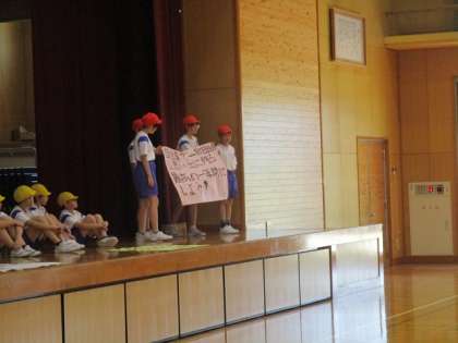 団のスローガンとスローガンに込めた思いを伝え、運動会への気持ちを高めていました。