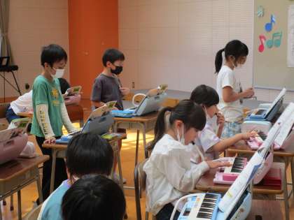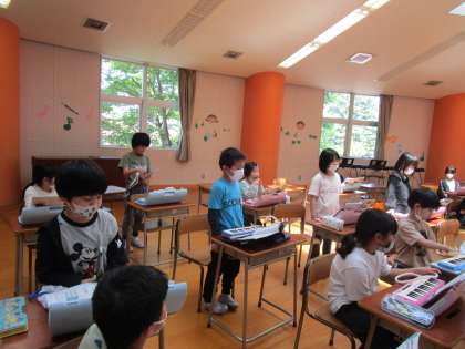 3年生 グループでの発表(音楽) 公開日 2023/05/11 更新日 2023/05/11 3年生 今日は、「風にのって」という曲のグループ発表でした。歌パートと鍵盤ハーモニカパートに分かれてグループ練習をし、最後に発表をしました。 一生懸命歌ったり、上手に鍵盤ハーモニカを吹いたりして、友達からほめられていました。