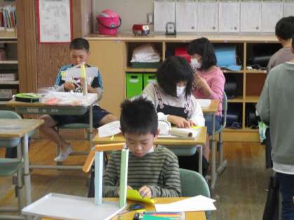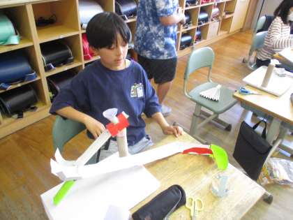図画工作科では、いろいろな厚紙等を折ったり曲げたりしてビー玉を転がすコースを作る「コロコロガーレ」の制作に取り組みました。ゴールまで確実にたどり着けるよう何回も試したり、イメージを膨らませて山や海、遊園地などを転がる様子を想像したりして、楽しみながら活動しています。