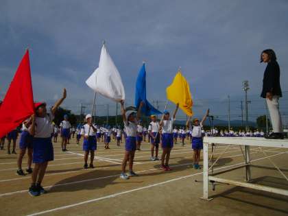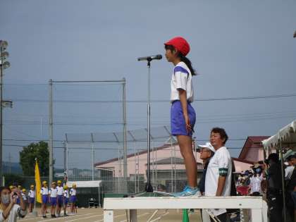 いよいよ待ちに待った運動会。 運動委員会委員長のさわやかな挨拶と、各団団長の堂々とした誓いの言葉から始まりました。