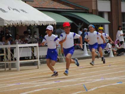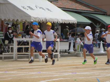 100m走では、朝のPU運動で鍛えた成果を存分に発揮していました。