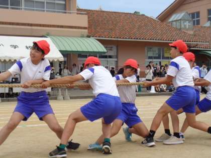団体競技の綱引きでは、120%の力で綱を引きました。
