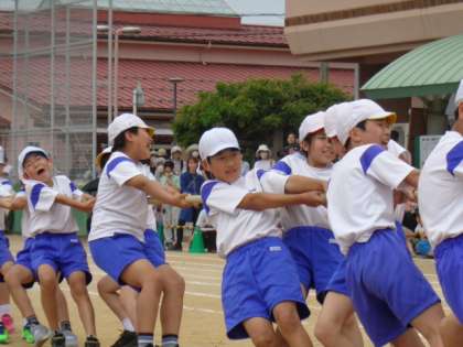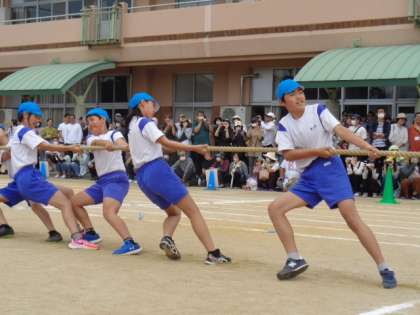 団体競技の綱引きでは、120%の力で綱を引きました。