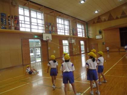 体育では、投げる力を高める活動に取り組みました。ひもとバトンを使い、正しい角度で投げる練習をしたり、ジャベリックボールで遠くに投げる練習をしたりしました。スポーツテストに向けて力を高めていきたいと思います。