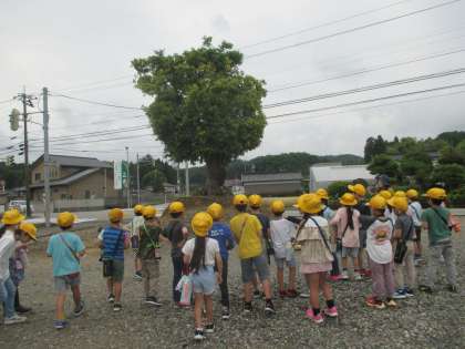 2年生 杉原探検 最終回 公開日 2023/05/31 更新日 2023/05/31 2年生 今日は、深谷地区に出かけました。JR高山本線の踏切を渡り、ドングリの木まで歩きました。桜の並木を見たり、花や桃の直売所で休憩したりしました。校舎が低く見え、深谷地区は学校より高いところだということが分かりました。