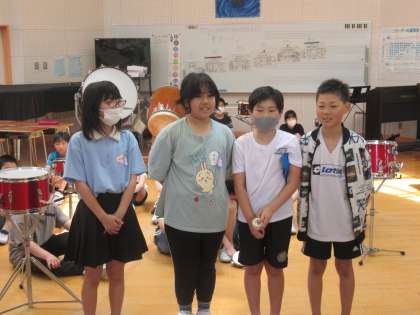 5松のリズムアンサンブルを5竹さんに披露しました。練習の成果を発揮することができて、手応えを感じていた子供たちです。インタビューでは、たくさん感想をもらうことができました。