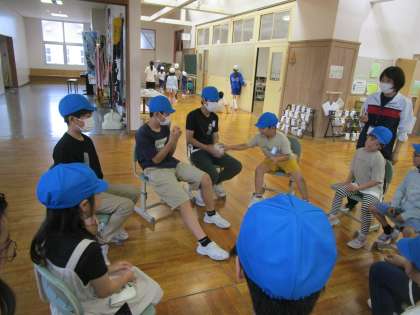 1年生 6年生さんとなかよし2回目 公開日 2023/06/03 更新日 2023/06/03 1年生 以前一緒に遊んだ6年生さんともう一度遊ぶ時間をとりました。 前回よりも長い時間たっぷりと遊ぶことができ、もっとなかよくなれました。