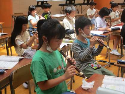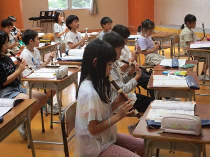 3年生 リコーダーの練習 公開日 2023/06/10 更新日 2023/06/10 3年生 3年生は、初めてのリコーダーの練習が始まりました。 先生のお手本をよ〜く聞きながら、一生懸命練習をしています。