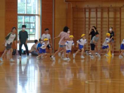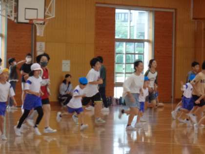 シャトルランの練習をしていました。今回は本番です。何回走ることができたのか、6年生のお兄さん、お姉さんに数えてもらいました。「練習よりも少し多く走ることができた」と振り返っていました。