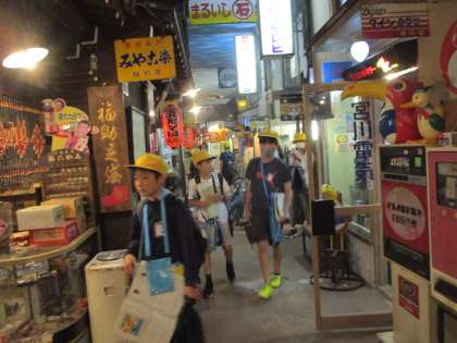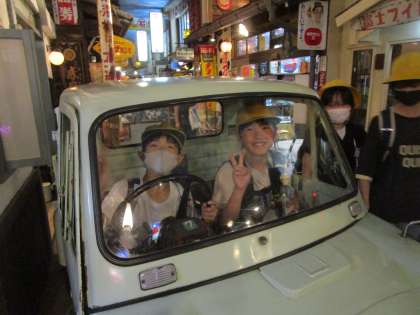 昭和館では、昔の日本の町並みや使われていた道具が再現されており、今との違いを見て触って感じていました。