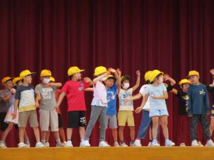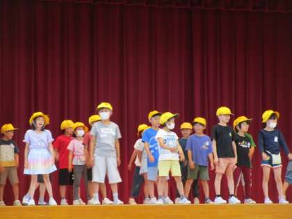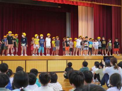 2年生 集会の学年発表 公開日 2023/06/20 更新日 2023/06/20 2年生 今日の全校集会で、2年生は「杉原探検」の様子を歌で発表しました。「畑のおばさんや散歩のおじさん、元気に挨拶」「おはようございます」「低空飛行のツバメたちや 田んぼで見つけた蛙の卵」「黄色くなった麦畑」と、出会った人や見つけたことを歌に入れました。歌は、「手のひらをたいように」です。若干ずれましたが、元気に歌いました。