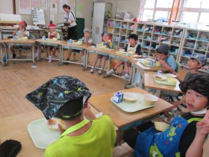 2年生 みんなで「食べキリン」 公開日 2023/06/23 更新日 2023/06/23 2年生 今週は、給食委員会主催の「食べキリンレース」の1位〜3位を目指して、松組と竹組が一緒になって給食を食べていました。いつもと違うメンバーなので、どんどんおかわりができました。