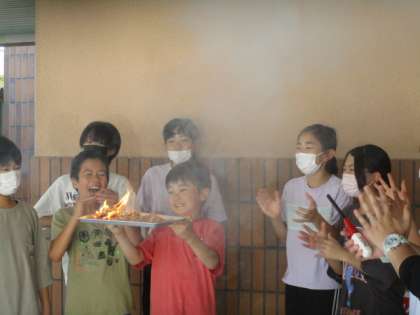 どちらのクラスも時間ぎりぎりまで粘ったのですが、自力で火起こしを出来たのは1つの班のみでした。