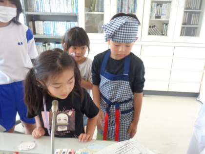 クラスを代表して、3名の児童が放送しました。自分でクイズを考えて、言葉を伝える練習を休み時間に繰り返しました。緊張しながらも、放送委員会のお姉さんに教えてもらいながら、堂々と放送することができました。教室に帰ってくると、放送を聞いていた子供たちから「よく聞こえたよ」「クイズの答えがすぐ分かったよ」と声をかけてもらい、嬉しそうでした。