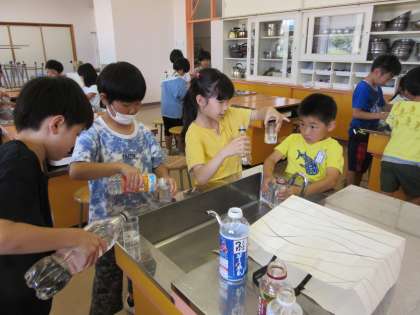 2年生 算数科 どちらが多い 公開日 2023/07/04 更新日 2023/07/04 2年生 持ち寄った容器に、水がどのくらい入るのかを確かめています。かさの単位を知っている子が多かったので、操作を通して理解を深めていきます。