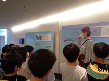 3年生 校外学習に行ってきました 公開日 2023/07/08 更新日 2023/07/08 3年生 先日、校外学習へ行ってきました。まず、ますのすしミュージアムへ行き、ますの作り方を聞き、実際に作っているところを見学しました。質問もできました。