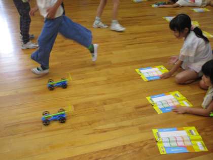 3年生 ゴムのはたらきで車を走らせよう(理科) 公開日 2023/07/13 更新日 2023/07/13 3年生 今回は「ゴムを使って最も遠くまで走らせよう」という学習課題で自分の作った車を走らせました。最も遠くまで走らせようと、ゴムのついたプロペラを何度も何度も回し続けていました。競争をして、友達より遠くまで走らせようとがんばっていました。