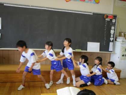 1年松組 国語「おおきなかぶ」 公開日 2023/07/15 更新日 2023/07/15 1年生 今週、「おおきなかぶ」の音読劇を行いました。グループに分かれて話し合って、役割を決め、はりきって練習に励んでいました。自分の役になりきって、「うんとこしょ、どっこいしょ」と声を合わせ、みんなで楽しみました。音読が大好きな子供たちです。