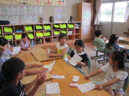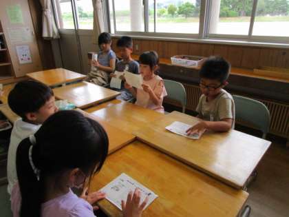 今日、ファミリー班のみんなに、自分のおすすめの本を紹介するため、国語の時間に練習をしました。恥ずかしくて、なかなか勇気が出せない友達にも優しく声をかけて、応援する姿が見られました。本番のファミリータイムには、「言えたよ」と嬉しそうに話してくれた子供もいれば、「言えなかった…」と残念そうな子供もいましたが、それぞれが勇気を出して挑戦していました。