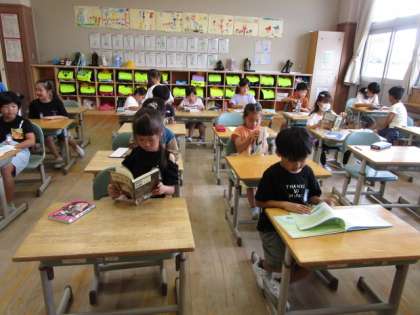 1年松組 朝読書 公開日 2023/07/20 更新日 2023/07/20 1年生 毎朝の朝読書の時間を、楽しみにしている子供たちです。夏休み用に借りた本を、嬉しそうに読んでいます。読書貯金カードに記入することも、子供たちの励みになっているようです。夏休みの間も、おうちで読書に親しんでみてください。