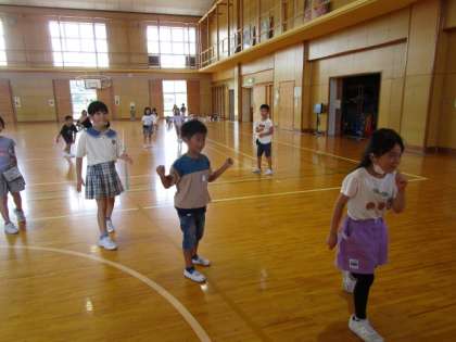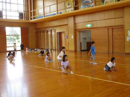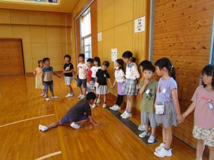 次に、だるまさんがころんだをしました。どの子も鬼に捕まらないように、鬼が振り向くと、ピタッと上手に体を止めていました。明日は、係で企画した内容を、みんなで楽しむ予定です。
