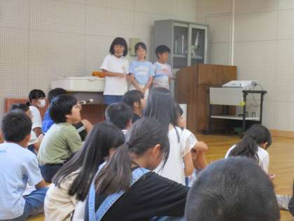 3年生 祇樹寺での活動のリハーサル 公開日 2023/07/22 更新日 2023/07/22 3年生 明日の祇樹寺での校外学習で自分達の考えたいろいろな活動を行います。今日は、そのリハーサルを行いました。司会進行や始めの言葉、終わりの言葉、グループ毎の発表練習を行いました。明日が楽しみな子供達です。