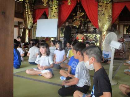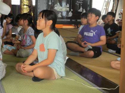 祇樹寺ができた話を聞いたり、座禅の仕方を教わり、みんなで体験をしたりしました。