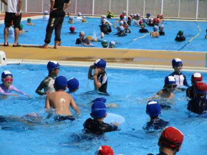 プール開放に多くの子供たちが来ていました。潜れるようになって楽しさも倍増しているようです。