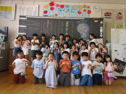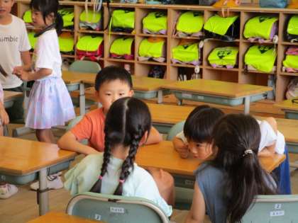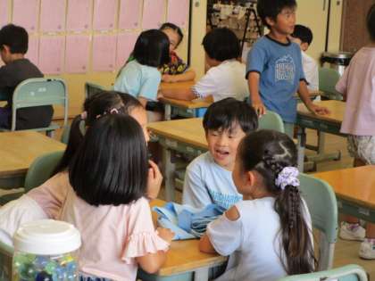 1年松組 全員集合 公開日 2023/08/28 更新日 2023/08/28 1年生 クラス全員が元気に登校できました。少し時間があったので、グループ毎にしりとりを楽しみました。苦手な子や、小さな声の子がいても、声を掛け合ったり、耳を近付けて聞いたりするなど、思いやりの心であふれていました。