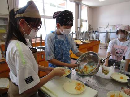 5年生 調理実習1 公開日 2023/09/04 更新日 2023/09/04 5年生 切り方やゆで方等、班の仲間と話し合って計画を立てました。空いている時間を上手に使って片付けをしたり、困っている友達にアドバイスしたりするなど、協力して進めることができました。