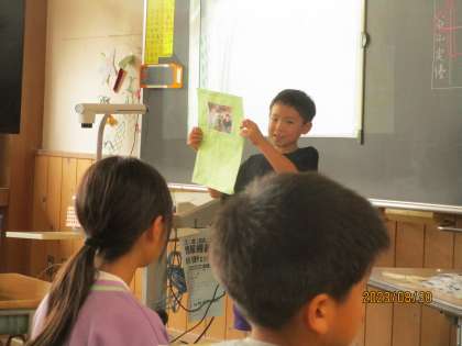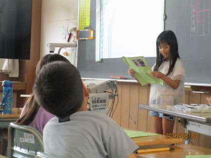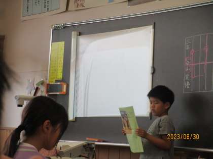 3年生 2学期が始まりました(総合的な学習編) 公開日 2023/09/05 更新日 2023/09/05 3年生 夏休みの宿題で、杉原のすごい人を調べてきました。それを発表しました。パン屋さん、ほんの森の図書館司書の方、杉原公民館の方など、大きな声で発表をしていました。
