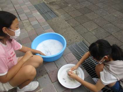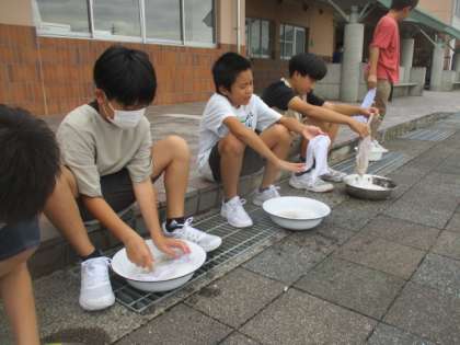6年生 手洗い洗濯に挑戦! 公開日 2023/09/11 更新日 2023/09/11 6年生 泥で汚れた靴下をきれいにするために手洗い洗濯に挑戦しました。 なかなか落ちない汚れに苦戦しながらも、何度もこすったり、もんだりするなど粘り強く取り組んでいました。