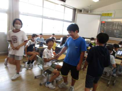 6年生 ありがとう 公開日 2023/09/17 更新日 2023/09/17 6年生 チャレンジ陸上記録会の前日、サプライズで壮行会を開いてくれた5年生に、ありがとうの花を届けに行きました。 すてきな応援のおかげで全力を出すことができました。ありがとう!