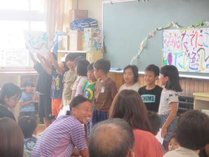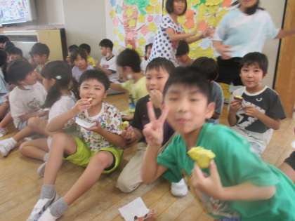 2年生 みんなでにこにこにじいろしゅう会 公開日 2023/09/20 更新日 2023/09/20 2年生 学習参観で、この前収穫したサツマイモを使って集会を開きました。笑顔あふれる、楽しい時間になりました。
