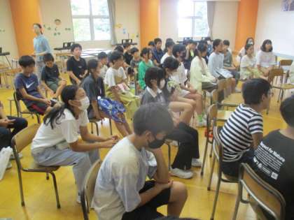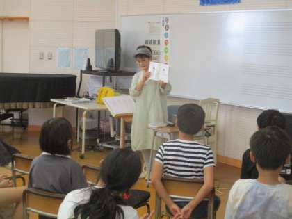 「海の命」や「おてがみ」といった教科書にのっている話や、大人向けの絵本等、さまざまなジャンルの朗読を聞く子とができ、しっとりと聞き入っていました。