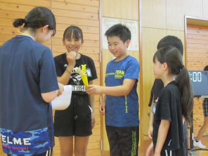 5年生 竹組 教育実習生とのお別れ集会 公開日 2023/09/26 更新日 2023/09/26 5年生 今日は、9月1日から教育実習に来ておられた横堀先生の実習最終日ということで、竹組ではサプライズの集会を開きました。これまでこっそりと準備を進めていました。一緒にドッジボールや震源地ゲームをして遊んだ後、手紙やプレゼントを手渡し、感謝の気持ちを伝えました。下校の時刻になっても、玄関で別れを惜しむ子供たちの姿が・・・。またどこかで会えるといいですね。