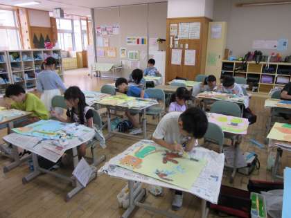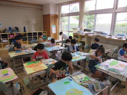 2年生 図画工作科 生きものとなかよし 公開日 2023/09/26 更新日 2023/09/26 2年生 生活科でお世話した生き物の絵も、仕上げに入りました。どの子も、その時の自分を思い浮かべながら、筆を運んでいました。