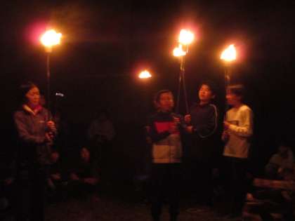 6年生 宿泊学習6 公開日 2023/10/04 更新日 2023/10/04 6年生 夜にはキャンプファイヤーを行いました。 大きく燃える炎を囲みながら、活動リーダーが用意したゲームや練習したマイムマイムを楽しみました。