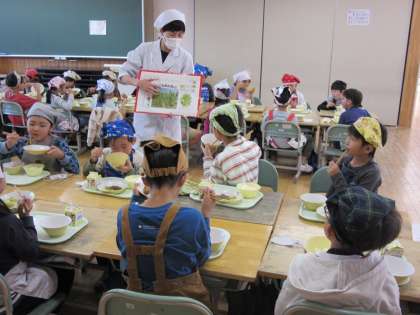 2年生 マコモタケのお話 公開日 2023/10/11 更新日 2023/10/11 2年生 栄養職員に、マコモタケについて押していただきました。育つと2メートルにもなるマコモタケにみんなも驚いていました。