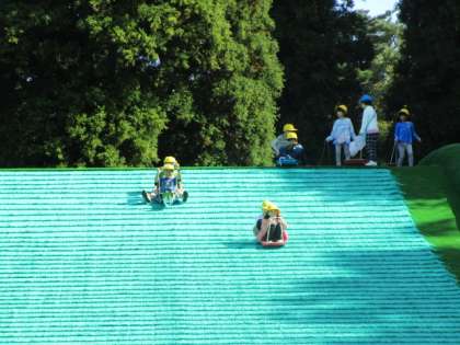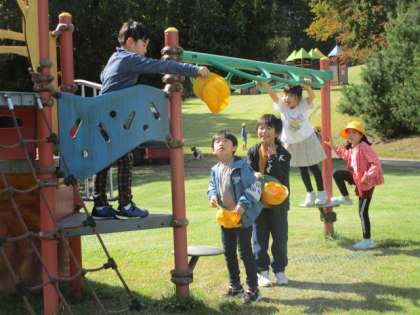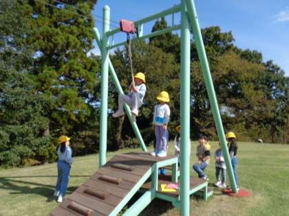 グループで話し合って決めていた遊びをしました。そり滑りやターザンロープ等の遊具で遊んだり、木の実を拾ったりしました。
