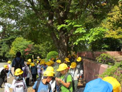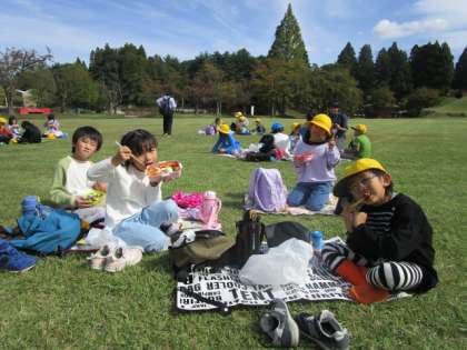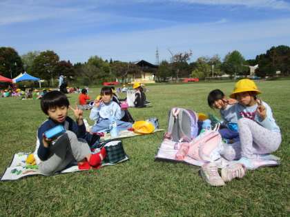 グループのみんなで、美味しいお弁当・おやつを食べ、どんぐりやまつぼっくり等を拾いながら歩きました。子供たちは「秋見つけが楽しかった」とにこにこ笑顔でした。秋を肌で感じていました。