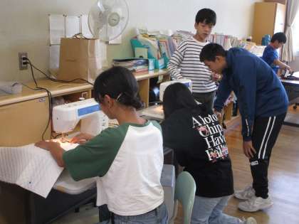 6年生 ミシン 公開日 2023/10/19 更新日 2023/10/19 6年生 家庭科ではトートバッグ作りを行っています。 約1年ぶりのミシン作業でしたが、意外と体が覚えていたようで助け合いながら取り組んでいました。