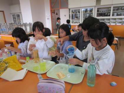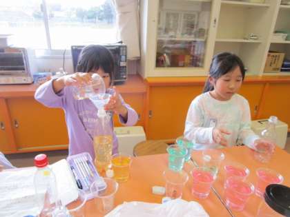 1年松組 算数「どちらがおおい」 公開日 2023/10/20 更新日 2023/10/20 1年生 ご家庭で用意していただいた容器に、水がどれだけ入るか、ペアで比較する方法を考え、確かめました。一人一人が、よく考え、主体的に取り組んでいました。