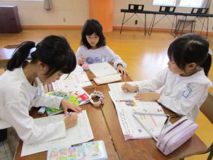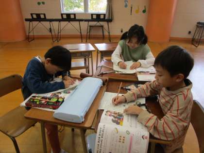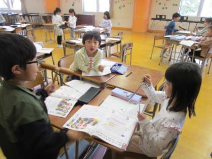 今日は、いろいろな楽器を試しに鳴らし、音色を確かめてから、グループで、話し合って担当する楽器を決めました。子供たちは、同じ鈴でも音の高さが違ったり、トライアングルは演奏の仕方で音色が大きく変わったりする面白さを感じていました。来週は、どのように演奏するか決めます。