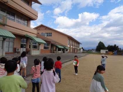 1年竹組 国語 くじらぐも 公開日 2023/10/20 更新日 2023/10/20 1年生 「天までとどけ、一,二,三,」とグラウンドでみんなで音読をしていると、空にくじらの形に見える雲が現れました。「あのくじらぐもにのってみたいね」と口々にいっている子供たちがかわいい表情でした。