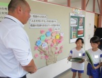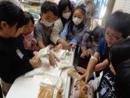 国語科の「すがたをかえる大豆」に合わせ、講師の先生をお招きして味噌の学習をしました。味噌は時間をおくと、色も感触も変わっていくことを知り、子供たちは驚いていました。気になることを質問し、たくさんの発見ができました。