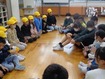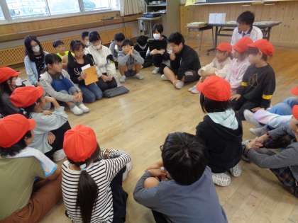 5年生さんが、マイタイムの取り組みについて紹介してくれました。「朝から漢字の学習をしていてすごいな」「給食のクイズは委員会の人が作っているんだ」と3年生は刺激をうけたようです。次は、3年生が1年生にマイタイムの取り組みを紹介します。