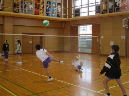 6年生 ソフトバレーボール 公開日 2023/11/14 更新日 2023/11/14 6年生 体育ではソフトバレーボールの学習が始まりました。 チームの仲間とラリーが続くトスの上げ方を考えたり、サーブの打ち方を何度も練習したりしていました。
