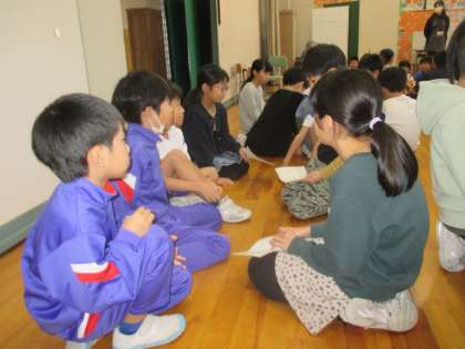 毎朝取り組んでいる、マイタイムの活動内容を4年生から聞きました。「階段を掃除しているよ」「オープンスペースで大縄跳びの練習をしているよ」と、4年生の取り組みを聞きました。参考にして、2年生もマイタイムの活充実させていきます。